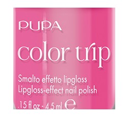 Pupa Color Trip Lipgloss effect nagellak Creëert het glanzende effect van lipgloss op de nagels. Laag-pigmentformule voor semi-transparante kleur...